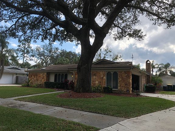 Pool Oasis with huge back yard, 3 bed 2 bath full brick home with stone front. 1 year new Florida room with vinyl sliding windows, 2 ceiling fans and TV mount. Gorgeous granite kitchen opens to family room with wood burning fireplace and breakfast nook all fully tiled. Separate living room in front of home could also be a large formal dining room. Split Owner's bedroom with French doors to a private covered patio with access to the in ground spa (not heated) and pool. 2 bedrooms split off from family room share a pool bath and the entire zone can be closed off for privacy. Walk in closets with shelving in all bedrooms. Side entry garage with drop down stairs and extended driveway with double swing gates lead to the back yard. Large garden shed for gardening storage.