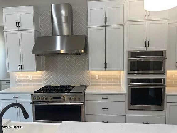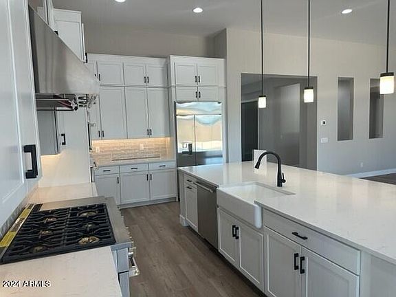 Gorgeous single level home across from the park. Double Iron Doors bring you into a huge great room and kitchen with 12 foot ceilings. NO CARPET at all in the home. 4 bedrooms, den and 4 1/2 baths with 3 car garage. Luxury vinyl plank floors throughout with Tile in the bathrooms. Beautiful white quartz countertops throughout the home. Everything was professionally designed and color coordinated. Amazing functional floorplan. Located near the coolest park in Eastmark.