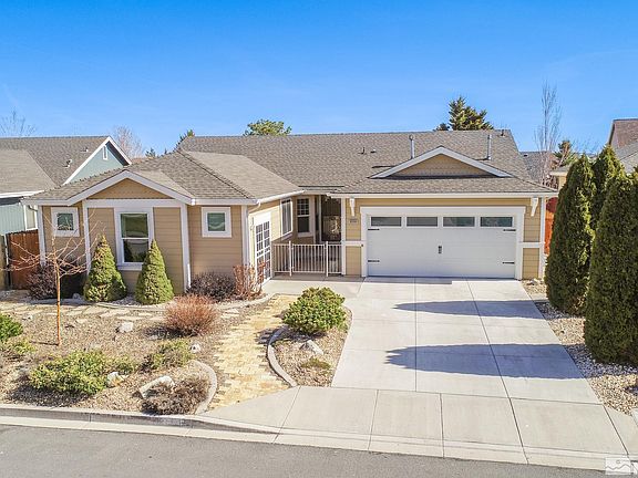 BEAUTIFULLY UPGRADED 4 BD SINGLE STORY HOME W/HUGE BONUS ROOM! This home features an open concept living space with a modern, white kitchen w/granite countertops and stainless appliances, huge island/breakfast bar, and room to entertain. Upgrades include additional canned lighting, light fixtures, window coverings, new dual water heaters, and kitchen & master bath remodels. The converted bonus room includes HVAC, dimmable lights, and private entrance perfect for guests, rec room, hobby business space, etc., The fully finished and insulated garage includes epoxy coated floors, installed cabinets, shelving, and overhead storage racks for abundant storage. New dual water heaters were installed in 2022. Home includes a transfer switch which was installed on the south side of home below circuit breaker. Transfer switch allows homeowner to transfer the source of electricity to the circuit breaker from the city grid to a personal generator in situations when the power is down to keep key systems working as usual without running extension lines to appliances, lights, etc. No generator included with purchase. The private backyard with no rear neighbors includes both covered and uncovered patio space, mature shade trees, raised garden beds with new topsoil, and a personal gate to access the HOA walking path which connects to miles of walking/running paths throughout the community, including a small HOA park less than 650ft from the back gate! Property also includes a dog run on north side of home and an external pet door for a small/medium cat/dog off the dining room. Front yard has xeriscape landscaping with drip system for easier maintenance and water conservation, backyard includes grass with full sprinklers and drip system. Located in the popular Sky Vista Community less than 5 mins away from the North Valley’s Regional Park & Lemmon Valley Shopping Center, this home provides access to shopping and recreation and quick freeway access into town. As little as a 15 min drive to the University of Nevada Reno! Click on the “virtual tour” button to explore the interior and layout of the home remotely!