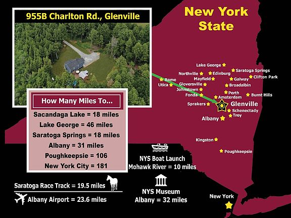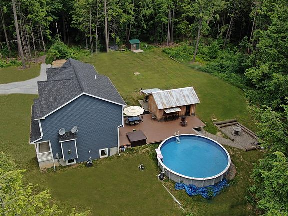 Saratoga Co - Town of Charlton - Galway Schools - Entertainer's Dream Home..whether inside or out! 8.84 acres with home set far back from the road &enveloped in complete privacy. Wildlife in your backyard. 4BR/2.5BA/2car attached garage. Just 4-yrs-young and in excellent condition by Katz builders. Oak floors, gas fireplace, cherry cabinets w/crown molding, granite counters, SS appliances range w/dbl oven, 25 X 30' Trex Deck, 14'x20' PUB Shed - bar opens to pool, Hot Springs Hot Tub, Central air. 28' abv ground pool. Go ahead and have friends visit in their RV w/parking and a drain for it. You will love holiday events in the finished basement with daylight windows and so charming! Master w/ensuite. Summers at the pool, deck and pub shed. Easy commute to the capital district or Saratoga.