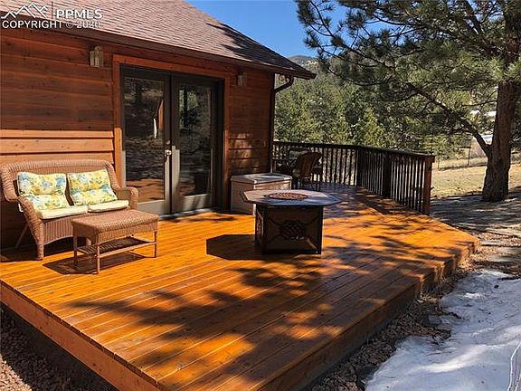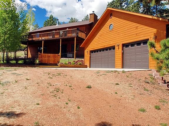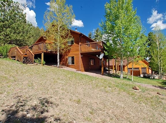 Gorgeous 38+ acres with PEAK VIEWS! Nicely treed on quiet road with only a handful of homes! Home has a walkout lower level with a huge family room with wood stove and new carpeting, office, laundry with dog bath and appx. 300 sf of storage* The main level has an open kitchen, vaulted great room, stone fpl, several walkouts to the wrap around deck! There is a stock pond to the West of the home!!This home has numerous upgrades to include extra insulation, 97% efficient 50 gal. H2O heater, Sensaphone, 150 amp main. The garage has a large shop plus several sheds, garage is appx. 36x30(3+ cars)! Beautiful concrete siding! Solar ready w/battery backup...just needs panels!