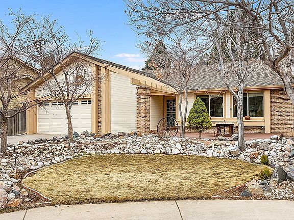 This is the ONE! Adorable Ranch home in one of Littleton's most sought-after neighborhoods: Falcon Ridge. Located on a large, private lot in a quiet, quaint cul-de-sac, the location could not possibly be any better. On the main level, you'll find an open floor plan, soaring ceilings, gorgeous hardwood floors, 3 bedrooms and 2 bathrooms, including a luxurious master suite with frameless glass shower and large walk-in closet. The full, finished basement offers great entertaining space, two more bedrooms, and ample storage. The backyard is a serene private retreat, with shade trees galore and a large, covered deck. This property has had many upgrades including; a newer class-4 roof, furnace, kitchen appliances, canned lights, doors and hardware, which make this home completely turn-key and borderline perfect!
