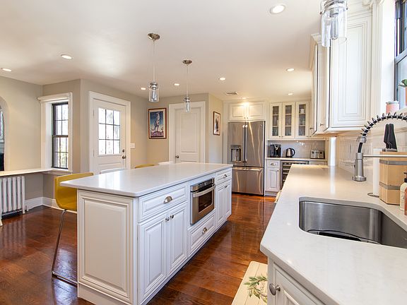 Step inside this bright and airy Tudor in the quaint town of Pelham Manor. Located just a few steps from Prospect Hill Elementary, this fully renovated home seamlessly blends modern elements with period charm. The home features a beautiful open kitchen with custom cabinetry, quartz countertops and a large island. Original oak hardwood floors flow throughout and are refinished with a tasteful dark stain. The second floor has 3 bedrooms including a spacious master bedroom with an en suite bathroom. There is additional finished square footage in the basement and 3rd floor bonus room. Other upgrades include new central A/C, roof, plumbing, electric service and garage doors. This one will not last long!