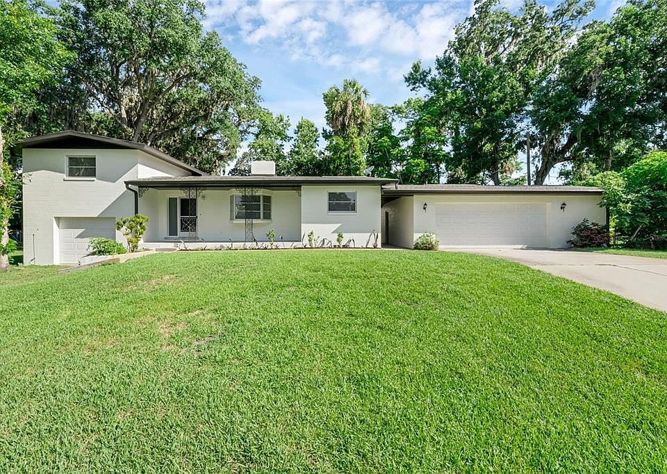Welcome to your dream home! Nestled at the end of a quiet dead-end street, this expansive .55-acre lot offers unparalleled privacy with quick access to all that Daytona has to offer. Thoughtfully renovated to preserve its natural charm and design philosophy, with enhanced functionality to optimize your lifestyle. Situated well above the street and outside of any flood zone, this property remains high and dry during Florida storms! This mid-century modern split-level home features 4 bedrooms and 2 bathrooms, providing ample space for your needs. Loaded with extras, it includes a 3-car garage with workshop space, and with no HOA restrictions, you can park your boat or RV with the convenient power and water hookup located at the back of the property. Upon entering, you’ll be greeted by soaring ceilings over 20 feet high. The floor-to-ceiling rough-cut block fireplace and travertine hearth add a touch of rustic elegance, while the embossed luxury vinyl plank flooring is bathed in light from the oversized windows, bringing natural elements indoors. We took special care to restore the stair-rails to their original charm. Everything is new in this home! The brand-new kitchen features white shaker cabinets and quartz countertops, complemented by a modern backsplash. Inside, you’ll find a host of updates, including new interior doors, flooring, bathrooms, and fireplace. The home is equipped with stainless steel appliances with fresh painted both inside and out. Additional updates include new plumbing and a 2-year-old A/C unit. Location is key – you’re close to schools, shopping, and just 2 miles from the beach and airport, with major highways easily accessible. Plus, Orlando and its attractions are just an hour away. Experience the perfect blend of comfort, convenience, and privacy in this exceptional home.