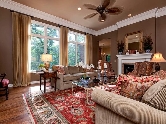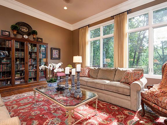 Gorgeous Design in James River Estates. This home sits on 3.2 acres. This spacious, bright and airy home offers five bedrooms, four and a half bathrooms, hearth room, formal dining, media room with projector and media chairs., multiple large living areas, two laundry rooms, a John Deere Room, storm shelter and tons of storage space. Upstairs bedroom complete with living area and private bathroom. Stunningly remodeled master suite on main level with Tall Rain head shower arched and beautifull tile work and free standing soaking tub, private deck with hot tub off master suite. Kitchen features large granite island great for entertaining stainless appliances including new Bosch dishwasher and New Refrigerator. Totlal of Six Car Garage, Three Attached and additional 3 detached with Additional 1102 Finished Sqft of finished living space great for Rec Room Office or large gatherings, additional living space above detached 3 car garage complete with deck from top level and deck off the back with wooded view! Hardwood Flooring and Crown Molding Gas Fireplaces, Walkout Basement, New Roof in 2018, 2 New HVAC in 2018.
