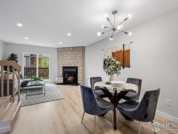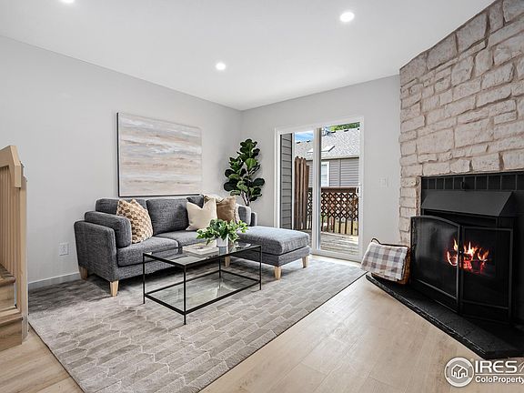 Welcome to this contemporary updated townhome in the desirable, centrally located Hearthwood subdivision! This charming 3-bedroom, 2-bath home is a perfect blend of tasteful upgrades and cozy living spaces. Step inside to discover a fully remodeled kitchen featuring brand new GE appliances, stunning quartz countertops, and a breakfast peninsula (rare for townhomes!). The main level has an open concept from kitchen to the living room complete with a wood-burning fireplace featuring freshly painted masonry (transformed from "dated" to "stylish. This home features a spacious back deck, perfect for enjoying the Colorado seasons. Head upstairs to find a large primary bedroom with vaulted ceilings and skylights, creating a bright and airy retreat. The upper level also includes a lovely secondary bedroom, and freshly updated full bathroom with modern fixtures and finishes. The lower level offers an additional versatile bedroom or home office with a walkout to the back patio. There is also an updated 3/4 bath and a conveniently located utility/laundry/storage room. This townhome has been meticulously updated with new luxury vinyl plank flooring throughout, fresh paint in every room, and new windows and sliding glass doors, plus brand new HVAC, main electric panel and improved plumbing. The Hearthwood community includes a pool and common areas for residents to enjoy. Conveniently situated with easy access to both downtown Lafayette and Louisville, you'll be at the heart of it all, close to excellent shopping, dining, and entertainment options. Just 40-min to DIA, 25-min to downtown Boulder, 35-min to downtown Denver.