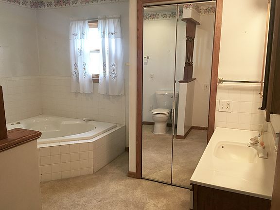Home sits on a corner lot. 1232 sq.ft. 2 bedroom home w/large kitchen/dining area, large living area, 1 1/2 baths. Finished basement w/large living area and wood burning stove, also features the possibility of 2 more bedrooms and a bathroom. Features also a 2 car attached garage. The highlight of the property comes with a 27' x45' wood structured heated and insulated building w/full concrete floor and floor drain, would make very nice shop/storage shed. Also has underground sprinkler system.