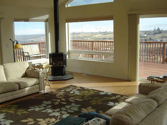 Sunday-Thursday calls for appointments. Contemporary 1 level beauty with vaulted ceilings, wall to wall windows & awesome views from every room. 3BR, 2 1/2 BA, formal living & dining rooms,family room, kitchen w/stainless steel Whirlpool appliances, breakfast bar, lg master suite w/32'' doors, walk-in closet, jacuzzi tub & shower. Storage below kitchen, over sized 2 car garage.
