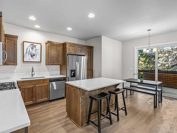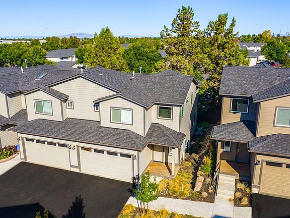 Nestled in a prime location near Pilot Butte trailhead and within an easy stroll to popular amenities such as Costco, Safeway, Lone Pine coffee, On Tap beer garden, less than 1 mile to StCharles Hospital and so much more! The interior is adorned with real wood knotty Alder cabinets, upgraded window coverings, LVP flooring, high ceilings, lots of natural light from the added end unit windows... The icing on the cake is the inclusion of air conditioning, quartz countertops and Whirlpool stainless steel appliances! Upstairs, you'll find all three generously sized bedrooms, a versatile loft area, and the laundry room, offering functionality and convenience. This home boasts an inviting and cheerful atmosphere throughout, a must see!