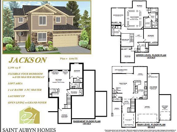 FIVE BEDROOM, FOUR BATHROOM, 3-CAR TANDEM GARAGE SAINT AUBYIN'S BEAUTIFUL JACKSON MODEL IN THE CONVENIENTLY LOCATED STONEWATER IN NORTHGATE. MAIN LEVEL IS LUXURY VINYL PLANK (LVP) THROUGHOUT AND CONSISTS OF A LARGE PRIVATE OFFICE, GRANITE AND STAINLESS STEEL KITCHEN WITH BREAKFAST BAR, DINING ROOM, POWDER ROOM, AND LIVING ROOM. THE UPPER LEVEL HAS A GORGEOUS MASTER BEDROOM WITH SITTING AREA, TWO-SIDED FIREPLACE, ENSUITE 5-PIECE BATHROOM, AND WALK-IN CLOSET, THREE MORE BEDROOMS, A LOFT, AND THE LAUNDRY ROOM (SOOOO CONVENIENT) WITH BUILT-IN CABINETRY. THE FINISHED BASEMENT IS INCREDIBLE WITH AN LVP HOME GYM, HUGE BEDROOM WITH A WALK-IN CLOSET AND GRANITE BATHROOM WITH GORGEOUS TALL BUILT-IN CABINETRY FOR TONS OF STORAGE AND A HUGE FAMILY ROOM WITH A GRANITE WET BAR, REFRIGERATOR, BREAKFAST BAR AND LARGE WINDOWS. THIS HOME HAS UPGRADES GALORE- WALL NICHE, AUTO SPRINKLER, HUMIDIFIER, UPGRADED LVP FLOORING ON THE MAIN LEVEL, BEAUTIFUL METAL SPINDLE STAIRCASE, GARAGE WALK-OUT TO BACK YARD, TREX DECK, LARGE CLOSETS, AND TONS OF STORAGE. PLAYGROUND IN THE NEIGHBORHOOD. CLOSE TO SHOPPING, HIKING TRAILS, I-25, AIRFORCE ACADEMY, FIRE STATION, AND SCHOOLS. VIEWS OF PIKES PEAK AND A FLAT YARD!