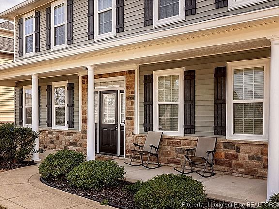Beautiful, custom home that boasts over 3,500 square feet and located in Patriot Park Village with easy access to I-295 and within minutes to Ft Liberty, schools, & shopping. This spacious home featiures 5 bedrooms, bonus room with closet that can serve as a 6th bedroom, 3.5 baths, formal dining room with coffered ceiling, office/formal living room with tray ceiling, great room with gas fireplace, first-floor master suite with tray ceiling, en-suite bath featuring dual sink vanity, separate shower, garden tub, large walk-in closet, sunroom that opens to a covered back patio, laundry room. The kitchen offers stainless steel appliances, with granite countertops, breakfast bar, pantry and breakfast nook. Upstairs you will find 4 large guest bedrooms each with walk-in closets, 2 full bathrooms and a bonus room. The fenced backyard overlooks a wooded area with no rear neighbors. No carpet on the main level. Blinds throughout the home. Welcoming covered front porch great for relaxing