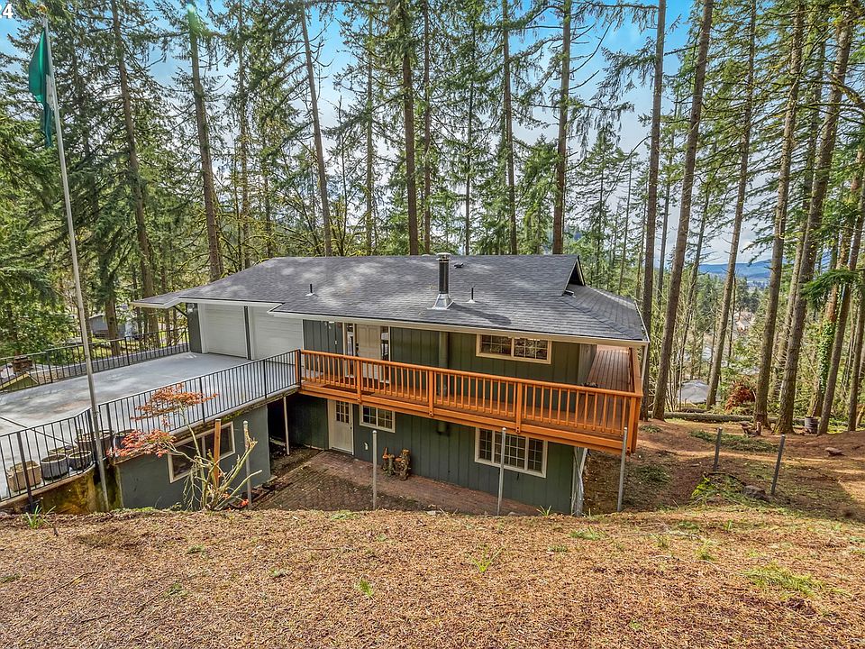 This well maintained home is found in the beautiful Thurston Hills area. Incredible mountain and tree views. Plenty of windows with natural light and multiple decks for entertaining guests as well as a large living room on the lower level that provides great separation of space. Gorgeous built in cabinets surrounding staircase and ample storage throughout the home. Large and flat driveway for your convenience with a large two car garage. BONUS EXTERIOR space that is unfinished, but has adequate electricity for a shop, workout room, craft area or what ever type of flex space you need. Updates include, new roof and gutters in 2024, water heater and kitchen appliances in 2018, New furnace and A/C in 2020. This home is well updated and ready to move in and enjoy!
