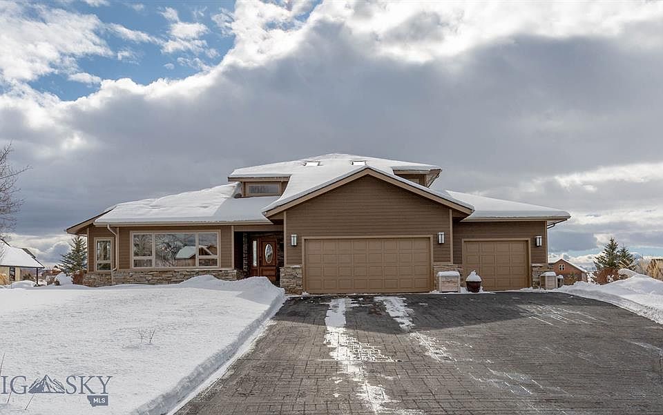 Beautiful Summer Ridge mountain contemporary home located on an elevated corner lot commanding 360-degree mountain views. Wonderful south facing deck off the living area which wraps around the east side of the home to take in full Bridger Mountain views. Meticulously cared for landscaping with extensive perennial gardens and a 9x12 greenhouse. The home has been completely updated both inside and out and is move in ready. The main level features formal living room with dining area, updated kitchen with radiant heated floors, secondary living room with stacked stone gas fireplace, two guest bedrooms, 3/4 bath, laundry room, mud room and attached 3 car garage. Second floor features a lofted seating area and master suite with private balcony, soaker tub, double sinks, tiled shower and walk-in closet. Lower level features family room, 3/4 bath and bunk room. Don't miss this great home!
