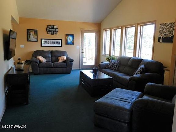FOREST SERVICE ACCESS FROM YOUR BACK YARD!!Nestled in the trees for privacy lies this beautiful home that butts up to Forest Service land.When entering you will notice the cathedral ceiling and sunlight streaming into the living room through the expanse of windows that line the eastern wall.The kitchen is open concept with an island for even more counter space.Updated white cabinets and granite look counter tops make this kitchen shine.The master ensuite is on the main floor with french doors onto the massive deck and a fabulous bathroom with double sinks,soaker tub and walk in closet.Additional main floor perks are built in cabinets and a desk,office space,laundry and half bath.