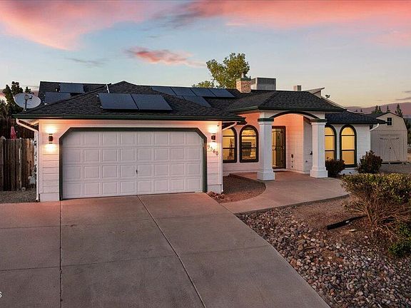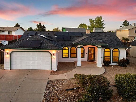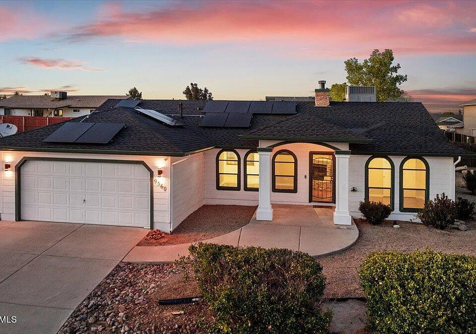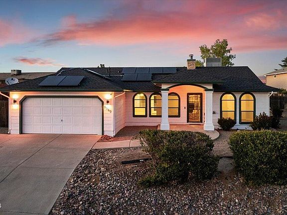 Well Maintained, Move-In Ready Home w/Amazing Mountain Views Located in a Great Community of Prescott Valley! This Wonderful Home Features a Comfortable Split Floor Plan, Spacious Living Room w/Gas Fireplace & Vaulted Ceiling, Well Appointed Kitchen w/ an Abundance of Cabinets & Counter Space, Large Dining Area w/Access to Covered Patio, Breakfast Nook w/Bay Window, Spacious Primary Bedroom w/Full Bathroom & Walk-in Closet, 2 Additional Good-Sized Bedrooms, Full Guest Bathroom, Laundry Room, 2 Car Garage w/Epoxy Coated Floor. Other Features Include: Private, Fully Fenced Backyard w/Great Views to the East, Landscaped Front Yard, Large, Quality Built Storage Shed, New Roof in 2023, Owned Solar, New HVAC in 2017, and Much More! Come View This Wonderful Home Today!