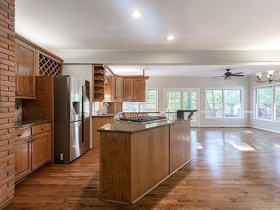- Kitchen Features: Breakfast Bar, Cabinets Stain, Eat-in Kitchen, View to Family Room, Stone Counters, Kitchen Island, Pantry Walk-In