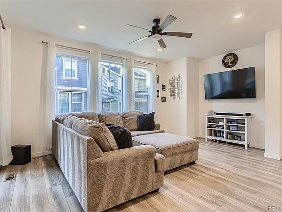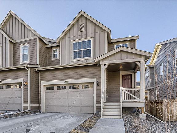 Stunning home in the beautiful Buffalo Highlands community! This 3 bedroom 3 bathroom TURNKEY, FULLY UPDATED Paired Home is a must see! Entertain your guests in the open concept kitchen with beautiful upgrades and finishes including luxury vinyl plank flooring, stainless steel appliances, large island, and walk-in pantry. Relax in the living room with lots of natural light or outside in your own private back patio! Upstairs you will find 3 large bedrooms including your very own primary en suite and washer/dryer! Home comes with security system, solar panels, and smart features. Unfinished basement is ready for your own touch. Community park only a 5 minute walk. Only 10 minutes away from DIA and 25 minutes from Downtown.