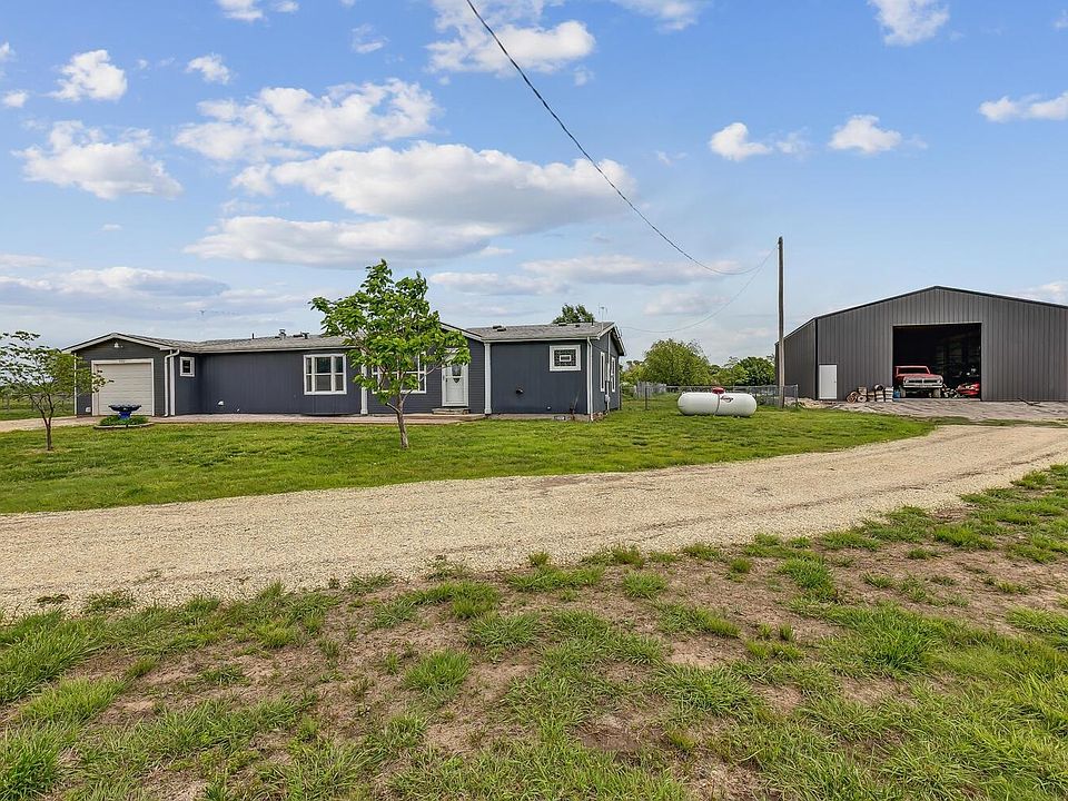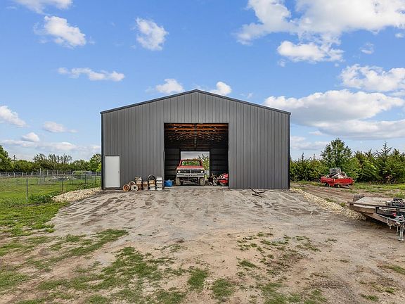 This fully updated 3 bd, 2 ba home has all the bells and whistles, including a 1.2 acre lot and a 40'x60' shop with concrete floors! This home is conveniently located on a quiet cul-de-sac just north of Kellogg for easy access to Wichita, Andover, and Augusta. The open floor plan features vaulted ceilings and LVT flooring for easy maintenance. The living room has built-in shelving and a brand new slider door. The kitchen is a dream come true with an 8 foot island, gorgeous sealed wood counters, single basin composite granite sink, and all stainless appliances are included! The primary bedroom has a new ceiling fan, a walk-in/walk-through closet, vaulted ceiling, and an ensuite bath. The bath is fully custom, with a 2 ft deep soaker tub and a walk-in double shower. Bedroom 2 has new carpet and a new ceiling fan, Bedroom 3 has wood laminate flooring, and both have large closets topped by an architectural decor shelf. The separate laundry room includes the washer and dryer, plenty of storage in the cabinets and hanging rod, as well as a coat closet to keep things tidy. The backyard is fully fenced for pets and kids with a 12'6" x 16 deck as the centerpiece! The oversized attached garage is longer and wider than most single car garages, and has a door for easy access to the backyard. The 40' x 60' shop has concrete floors and two huge doors for drive through access to the back of the large lot. This compound is priced below county tax appraisal, so it won't last long!