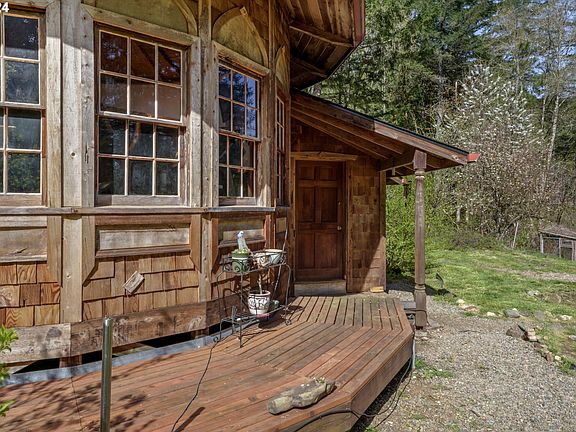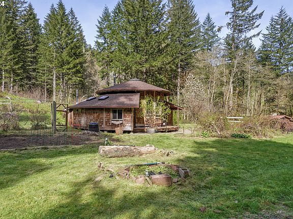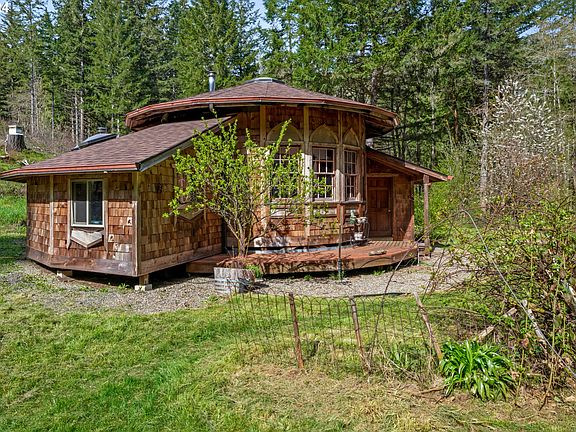 Escape to serenity and live a peaceful life in this beautiful Artisan yurt-style home on almost 16 gorgeous, wooded and open acres! This tranquil setting features 2 creeks, a separate studio that could be a detached bedroom, or craft room, sun drenched garden area, a small barn with 2 stalls, fenced pasture area, and open field that could be additional pasture or an enormous garden! The rustic shop has plenty of power for indoor gardening, and room for storage. 2 private full hookup RV spots past the pasture in the wooded area for visitors, camping out, or caretaker rental. Dream of future possibilities for the hillside and southeast facing slope behind the home that could be used as a great garden area, or potential building site for a new home overlooking the acreage. Peek the private deck fort overlooking the creek that is an absolutely heavenly hideout to get away from it all and unwind. The artesian well produces plenty of water for all your needs! Multiple rustic storage buildings provide space for all your tools. Buyer due diligence recommended for potential building requirements. Agent related to seller.