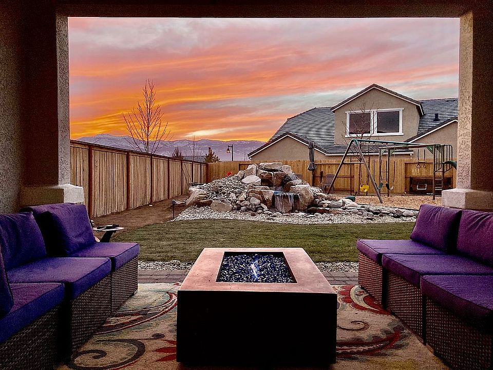 FULLY FURNISHED, professionally designed and decorated. Available August 1, 2023 - May 31, 2024. Newly built (2020) luxury Toll Brothers 5 bedroom, 4.5 bathroom model Laramie home in the Bella Vista Ranch Neighborhood w/ all amenities included! Rare combo of peace and quiet while also being moments to key express/freeways to access everything Reno and Tahoe have to offer. Less than a mile from the brand new Swift Sportsdome complex and walking distance to top rated Nick Poulakidas Elementary. This amazing house features THREE Master Suites (King, Queen, Queen) with full ensuite bathrooms. The additional 2 rooms are set up as: 2 twin beds and office with dual desks (office can be converted to bedroom if tenant requires). All beds are luxury Loft & Needle mattresses, and organic cotton bedding for the best night sleep possible. Fully provisioned kitchen with professional appliances including a 48" JennAir range and dual ovens. The quartz waterfall center island will encourage any novice chef to hone their culinary skills and meet any need a seasoned chef may desire. Triple size sofa surrounds 72" linear gas fireplace and 86" Smart TV, 11' (yes 11 feet!) dining table for 16, and island bar seating for 4 allows seamless interactions. Do you love to entertain? The three wall-to-wall great room/dining/kitchen sliders provide unobstructed views of Mt. Rose and open to a massive fully landscaped backyard, with multiple seating areas, gas fire pit table, and soothing sounds from the waterfall/pond/creek feature. Professional grade hibachi, pizza oven, and grill will take any grill master to the next level. Outdoor dining seats 8 plus additional seating areas. You'll love coming home to the sanctuary of a Master bedroom with an upgraded bathroom and gas fireplace. Calling you into your zen state is an over-sized shower and luxury Kohler soaking tub. Tankless water heater, Smart thermostats/garage/keyless entry, dual zone HVAC units, Eastern facing FLAT driveway (for AM sun to melt the snow!), and oversized pantry are just a couple conveniences this house affords. Fully furnished lease August 1, 2023 - May 31, 2024. Tenant pays all utilities. Fiber internet (1000 Mbps+) available in the home (and 4 Cat6 ethernet ports throughout house). Owner pays HOA, taxes, and Cyan drainage. No smoking/vaping. Flexible lease term.