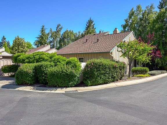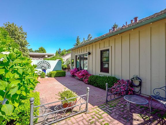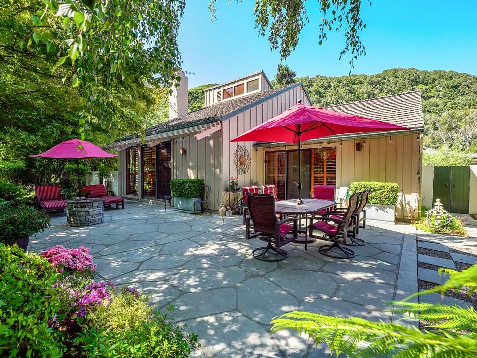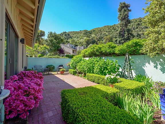 This gorgeous freestanding townhome boasts one of the largest lots in Carmel Valley Ranch. The spacious end-unit grounds include four stone patios, lush colorful gardens, drip irrigation, audio system, night lighting, fire pit and fountains, all nestled amidst privacy shrubs. Gather in the grand living room with vaulted ceilings, wood beams, plantation shutters, stone fireplace, wet bar and French glass doors. An open chef's kitchen features custom cabinets, marble counters, butcher block island, farmhouse sink and high-end stainless appliances. There are ensuites with walk-in closets on both levels, an attic for extra storage, and all bedrooms have sliding glass doors inviting you outside. Comfortable climate control includes forced air, radiant heat floors and air conditioning for those sunny afternoon gatherings. Optional club membership gives access to amenities like golf, tennis, spa and more. Come enjoy luxury ranch living, where every day feels like the perfect vacation getaway.