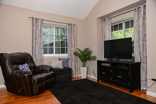 Fresh paint, flooring, and more are offered up in this Foulks Ranch home! All hard surface flooring downstairs for easy clean up, and brand new carpeting upstairs for the cozy bedrooms! Each bedroom has it's own bath with new flooring! Bright kitchen with 2 sliders to back patio, utility room with counter and cabinet, and half bath, all with new high end vinyl flooring. Dual pane windows are energy efficient, and equipped with security features.
