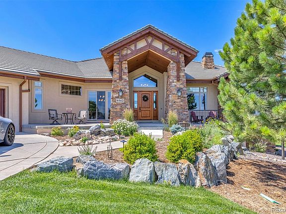 Welcome to this spectacular mountain contemporary home, tucked away on a 1.53-acre lot in the highly desirable neighborhood of Spirit Ridge! You're greeted by a lushly landscaped yard and covered front porch which leads to a vast entryway with vaulted ceilings. In the living room natural light floods through large windows, showcasing the striking stone fireplace while a walk-out deck offers stunning south-west views, overlooking the private putting green. Every inch of this home exudes sophistication and comfort.
