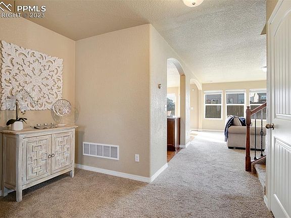 Looking for a newer home conveniently located near Fort Carson and quick access to I25? This is it! *** Open Floor Plan *** Kitchen w/ breakfast bar island, granite counters, refrigerator included, pantry *** Great Room w/ laminate wood floors throughout the kitchen and dining room areas, walkout to backyard and patio *** Primary Suite + 2 Bedrooms + 2 Full Bathrooms + Laundry + Large Loft all conveniently located on the upper level *** Primary bedroom is spacious with an attached 5-piece bath, separate shower and soaking tub, walk-in closet, double vanity w/ granite *** Both additional bedrooms have walk-in closets *** Extra living room space located at the front of the house *** Covered Front Porch *** Covered Back Patio and Fenced Backyard *** Oversized Tandem Garage *** Central A/C *** Carpet replaced in 2020 *** Roof replaced in 2018 *** Come and see how much this home has to offer!