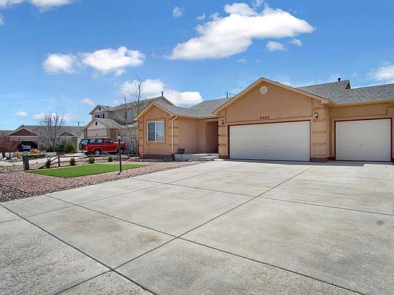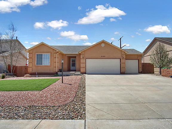Lovely Stucco Rancher with Walk-Out Basement Backing to Open Space with Stunning Pikes Peak Views! The Spacious Living Room with Vaulted Ceiling, Hardwood Flooring & Cozy Gas-Log Fireplace Welcomes You Home! You'll Love the Elegant Master Bedroom Suite with Vaulted Ceiling, Ceiling Fan, Walk-in Closet, Adjoining 5-Piece Bathroom Featuring Double Sinks and Soaking Tub with Separate Shower & Commode Room! Two Large Secondary Bedrooms! The Eat-in Kitchen Boasts Lots of Cabinetry Including an Island and 2 Pantries! Appliances Include Oven with Gas Stovetop, Built-in Microwave, Refrigerator, & Dishwasher! The Walk-out Basement has been All Insulated with 3 Rooms Framed Out, Including a Bathroom Area with Sink & Toilet! Huge 30'X50' Covered Concrete Patio! Main Level has a 15'X25' Wood Deck! 50 Gallon Water Heater! Central Air Conditioning! Blinds & Curtains Included! Washer & Dryer! Great Place to Call Your Next Home.......Take a Look Today!