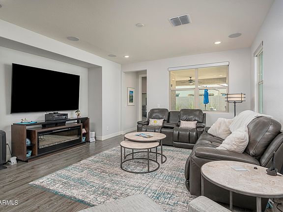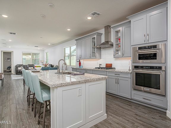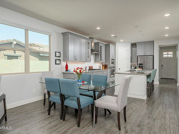 LIKE NEW CONSTRUCTION w/ loads of upgrades.Property features: 3 bedrooms+Office, 2 Baths situated on a beautiful oversized lot located in highly desirable community, Eastmark. Shows like a model offering wood-like tile floors, electric shades, water softener, R/O system, 10 ft ceilings, Built-in surround sound both inside & outside, large kitchen overlooking family room w/ KitchenAid stainless appliances, gas stove, granite countertops & more. Backyard is a dream w/ huge covered patio, outdoor kitchen, above ground spa, misting system, gas firepit, artificial grass & lemon, lime & orange trees! Home has been barely lived in and is being sold by the original owner. Home is truly a perfect 10 & every buyer will love! More than a place to live, Eastmark is a community built on rich connections and creativity. It's also a place to evolve. Eastmark is defined by its diverse residents who work together to co-create this special place where neighbors not only know each other, but are personally and emotionally connected to each other and to our community. Living here truly is "the mark of something special." Living in Eastmark grants access to resort-style amenities, including a luxurious community pool, splash pads, numerous parks, the Steadfast Farm, the Handlebar Diner, and the state-of-the-art clubhouse, "The Mark." The Mark hosts events throughout the year and offers a wide variety of family-friendly games. Don't miss the opportunity to make this incredible home yours and experience luxury living at its finest!