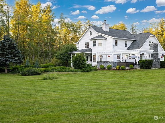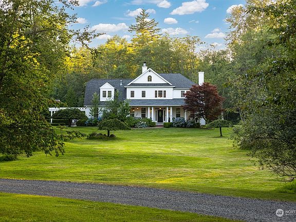 A classic Stephen Fuller-designed Colonial Revival home situated on a gated 5-acre estate. A wandering, tree-lined driveway leads to a stunning residence set back approx 700’ from the road for additional privacy. This 6-bedroom home showcases timeless design, finishes, millwork, refined crown molding, and a chef's kitchen. The covered front and back porches are cozy gathering spaces with captivating territorial views. The pergola-framed stone patio with built-in grill, sink, outdoor fireplace and new 7-person hot tub makes for an ideal location to entertain. The property has a 4-stage whole house reverse osmosis water system, full high-speed Wi-Fi mesh coverage, and is located 10 minutes from the US/Canada border crossing.