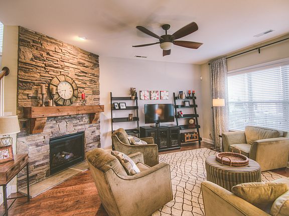 SELLERS WILL ENTERTAIN OFFERS BETWEEN $349,900-$369,900. This beautiful David Weekley home is situated on a well manicured flat lot within a very desirable community with great schools. Custom hand scraped wood floors throughout the first floor. Custom Plantation Shutters in main areas. Lg. Great Room open to Kitchen with gorgeous floor to ceiling stone fireplace. Gourmet Kitchen features custom glazed white cabinets, Stainless Appliances including Gas Range, Granite counters, Travertine back splash, Lg. Island w/Eat-in bar and custom pendant lights. Guest Bath has been upgraded with custom stone vessel sink on granite. End your day in the spacious Owners Suite featuring a beautiful bath which includes a garden tub and separate shower with custom tile detailing, Lg. double sink granite vanity, and Walk-in Closet. 3 additional bedrooms plus a loft provides a spacious living environment. You'll love the outdoor space-Newly screened porch w/custom tile floor. Lg. patio and Flat Fenced Yd.