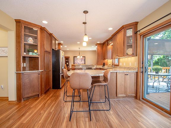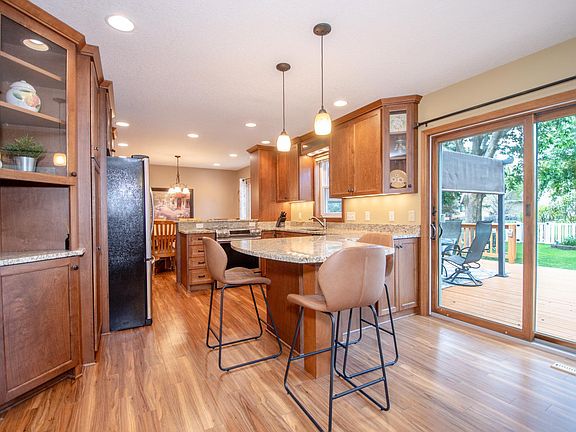 BEAUTIFUL, PICTURE PERFECT TWO STORY with fabulous space for everyday living or entertain in style in the backyard oasis pool side, grilling on the sprawling deck, relaxing under the gazebo, or play lawn games around the fire pit! It's all AMAZING! The warm and welcoming interior features an abundance of natural light, all new windows that capture the beauty of the outdoors, open concept main floor with family room and formal dining plus a finished lower level. You'll love the modern and sleek remodeled kitchen with walkout to the scenic west facing backyard, a peninsula, granite counters, and stainless appliances. Second story features a full bath, 4 generous sized bedrooms including a primary suite with luxury vinyl plank flooring and a private 3/4 bath. Spacious lower level offers a family room with 2 sided gas fireplace, dining/game area, built-in wet bar, versatile office/flex room with egress window and 3/4 bath. Crystal clear sparkling in-ground heated pool with 8ft deep end and a walk-in entry - auto cover makes it ultra convenient to open & close. Extremely well maintained and landscaped lot with irrigation, 2 car garage with additional bump out, storage shed. New furnace/AC 2021, windows 2019-21, kitchen/dining 2016, finished lower level 2012, replaced pool liner & pump 2019/20, auto cover 2019. Fantastic location within neighborhood, walking distance to elementary school, walk/bike trails around popular Colby Lake, easy access to Valley Creek/Woodbury Dr eats/shops. High demand #833 South Washington schools.
