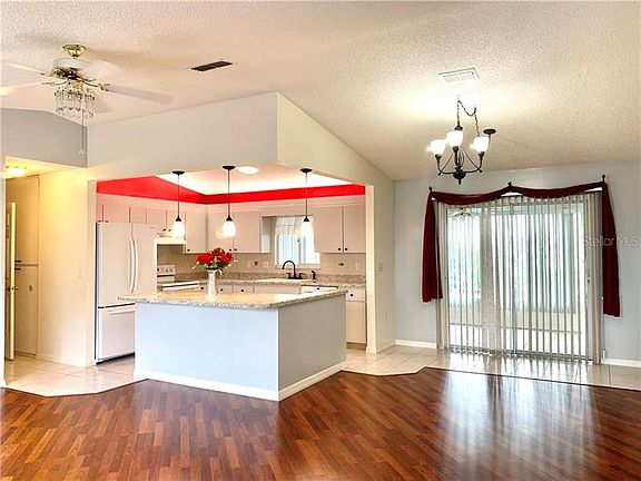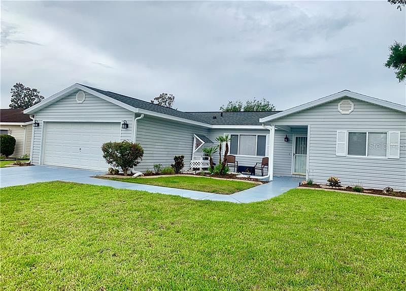 Beautiful Open Holly model on a Corner Lot. Features a Split & Open Floor Plan home with great Curb Appeal in 55+ Spruce Creek Golf Community conveniently located immediately adjacent to The Villages. Move-in Ready 3/2/2. This home includes a New roof in 2016, new Carrier A/C in 2016, Newer Hot Water, and New Water Filtration System. Courtyard patio at entrance to home w/nice private enclosed lanai and back yard. Cathedral Ceilings, newer laminated wood floors on diagonal in most rooms. Tile in kitchen/baths. Newer appliances including French Door Refrig, Glass-Top Range, super quiet Bosch dishwasher. Breakfast bar/island between kitchen, LR/DR w/pendant lights over newer counters w/beveled edges. Inside laundry room w/newer Samsung washer/dryer. Large glass enclosed 20x10 Lanai w/tiled floor, small covered patio off lanai. Painted driveway, walk/garage floor. Inside recently painted and home is in move-in condition. Enjoy all the activities available in this lovely community which is conveniently located to Shopping, Restaurants, Banks, Churches, Medical, and virtually anything you could want or need.