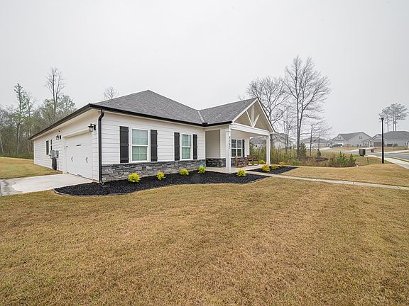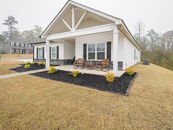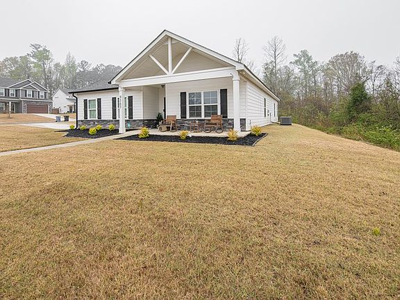 Beautiful home was built in 2020, located on a corner lot in Midland, GA with side entry garage. This home offers a beautiful covered front porch with new landscaping. When walking in the front door you're greeted with an oversized hallway with wainscotting that flows throughout the main living space as well as LVP. Owners Suite offers a full wall of windows vaulted ceilings opening into a en suite with a double vanity, separate tiled shower and soaker tub. Large walk in closet that opens into the laundry room with drop zone for bookbags and coats. Kitchen and Bathrooms offer tile floor and granite countertops. Kitchen has an oversized island with a view of the living space and breakfast area. Walking on to the covered back porch you are greeted with a large outdoor wood burning fireplace and wired for a TV for entertaining. You don't want to miss this Beautiful 3 Bedroom 2 Bath home.