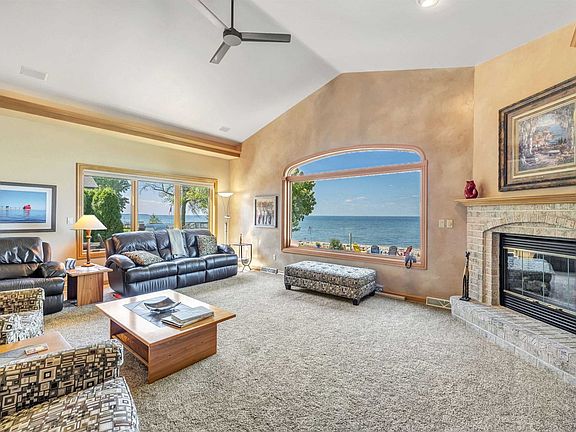 According to Wikipedia, a Sunset is a phenomenon that happens every 24 hours, it is defined in astronomy as the moment when the upper limb of the Sun disappears below the horizon. No more imagining, it is here Everyday! Upon entering you will admire the superior craftsmanship and endless waterfront views. Quality and comfort awaits you less than one mile from Door County and less than 30 miles from Lambeau Field and the Green Bay Packers. Once you review the Seller Update list provided you will have no question on the pride of ownership and care the Seller's have provided. Whether your passions include water sports, fishing, golf, racket sports, hiking, jogging, cycling, cross country skiing, snowmobiling, bowling, theater going, live plays and/or the sounds of the beach....it is Here!