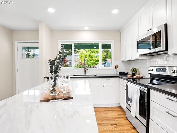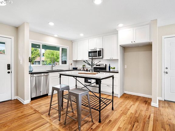 GORGEOUS bungalow in St Johns neighborhood! This home features a newer roof, fresh interior/exterior paint, wood flooring, updated fixtures, & more! Upon entering, marvel at the abundance of natural light! Kitchen boasts new SS appliances, quartz counters, white shaker cabinets, & an island that doubles as an eating area! Living room opens to the kitchen and offers easy access out back! Backyard also showcases a wood deck! [Home Energy Score = 1. HES Report at https://rpt.greenbuildingregistry.com/hes/OR10076903]