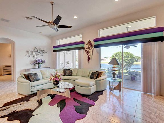 Lovely Alexander Floorplan features 3 bedrooms, 2 baths and endless lake views! One of the most sought-after floorplans in the community. The spacious great room consists of high ceilings, two sets of sliders, open to kitchen, breakfast and dining rooms with views of lanai and lake beyond. Kitchen includes black granite counter tops and back splash, black appliances, 42" white upgraded cabinetry with crown molding, pantry fitted with bottom pull-outs, snack bar and eat in breakfast area with bay window and plantation shutters. Master suite features neutral carpet, large his & hers California style walk-in closets, bathroom with dual sinks, Roman tub, separate shower, under cabinet lighting, extra vanity drawer, upgraded vanity lighting and large glass block window that lets in (more)
