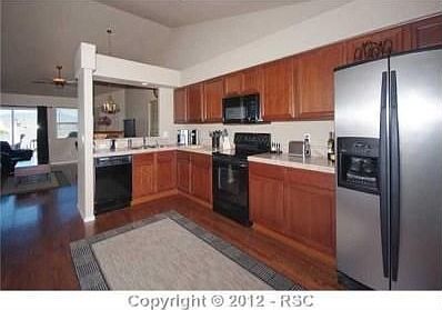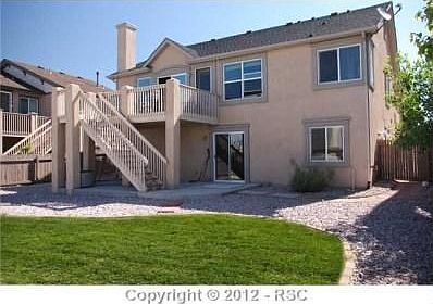 Hard to find Stucco Ranch w/walk-out fin. basement in Pine Creek golf community, D-20 school district. 2608 sf, 4 bedrm, 3bath, 2car. Breathtaking views of Pikes Peak and mountain range from Great Rm.,deck and Master, which also has private walk-out to deck & adj. 5-pc bath. Hardwood on main, vaulted and 9 ft. ceilings throughtout, open floor plan. Kitchen w/cherry cabinets. Family Rm. w/wet bar walks out to fenced backyard. Smoke free home. Close to shopping, schools, hosp. & neighborhood splash park. Move in ready.
