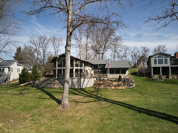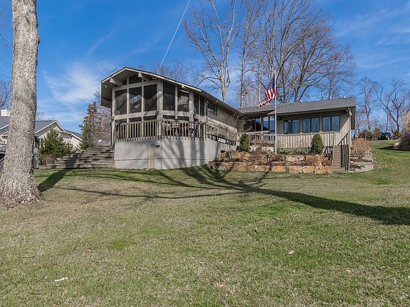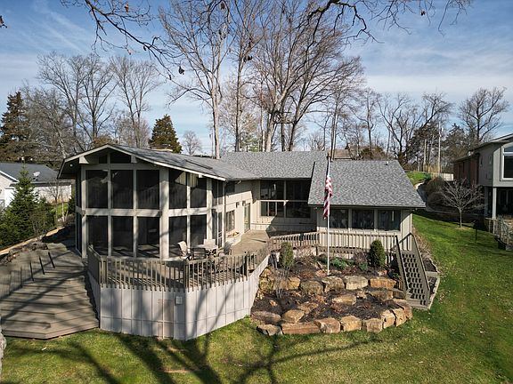 Charming mid-century modern home on South Harrison Lake with unobstructed lake views. Upon entering, you are greeted with expansive views through the abundance of windows. Beautiful HW floors in living room & sun room. The kitchen & dining room are great for entertaining. Large primary suite w/ WIC and adjoining office. Large courtyard and rear deck. A gently sloping rear yard takes you down to the Trex covered dock housing a boat lift. Beautiful landscaping designed by Brown Hill Nursery. A beautiful neighborhood for walking, gardening, boating, golfing, tennis and swimming. Drive your own golf cart to Harrison Lake CC where memberships are available.