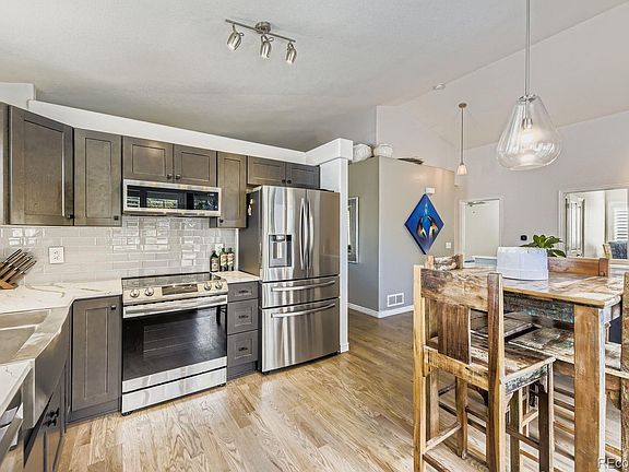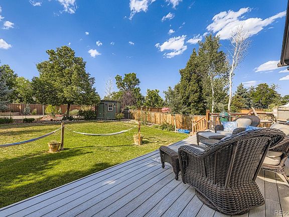 Your Dream Ranch Retreat Awaits! This charming 3-bedroom, 3-bathroom ranch is the perfect blend of style, comfort, and fun! Step inside to discover gleaming hardwood floors (recently refinished), fresh interior paint, new doors with upgraded hardware, and a stunning fireplace surround tile that makes the living space shine. The 2023 bathroom remodels brought fresh style and modern finishes, along with new interior light fixtures, plus a new furnace & AC to keep you comfortable year-round. The heart of the home? A full kitchen remodel completed earlier this year, featuring sleek quartz countertops, beautiful cabinetry, and brand-new appliances — perfect for the chef in you! The finished basement offers extra living space and includes one of the updated bathrooms, perfect for guests or a cozy hangout spot. Step outside to your personal playground: a small basketball court + additional concrete slab for fire pit or hot tub, large deck, mature landscaping, and a spacious shed for all your storage needs. The window shutters throughout the home add charm and curb appeal. Best of all, you’re within walking distance of schools, close to multiple shopping areas, and enjoy easy access to the Colorado Rocky Mountains as well as the business centers of Denver. From stylish updates to outdoor fun, this home is ready to welcome you with open arms — just bring the basketball and start living your best life! Also, there is a charger for an EV vehicle in the garage!