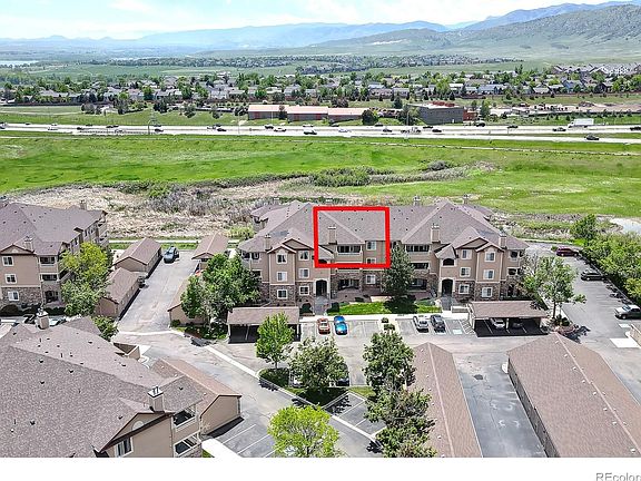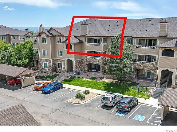 Beautiful completely remodeled condo at Redstone Ridge in excellent condition! Vaulted ceilings and a spacious open floorplan. New flooring throughout. Remodeled kitchen with granite counter tops, newer cabinets & appliances. Living room with a fireplace, nice office nook, glass slider doors opening up to a large covered balcony. Spacious primary bedroom w/ vaulted ceilings, a spacious walk-in closet, and additional closets. Walk-in laundry room with full size washer/dryer & additional pantry storage space. Great community has an outdoor pool, spa, fitness center and clubhouse! Parking includes covered carport #176, as well as plenty of open unreserved parking throughout. Abundant hiking and biking trails right outside. Conveniently located to restaurants, shopping, public transportation and C470. Part of Foothills Park and Recreation District with 4 golf courses, numerous Recreation Centers and Pools. Deer Creek Pool is a 5 minute walk from the condo.