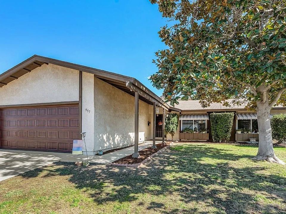 Welcome to this charming, single-story home situated on a quiet street. Tasteful upgrades throughout were all done in 2020, including a new kitchen with matte black appliances, including a convection oven with air fry, a stove hood, white cabinets, quartz countertops, stone tile backsplash, breakfast bar, and beamed ceilings in the kitchen and living room. The family room has sliders opening to the indoor patio where you can sit and watch the hummingbirds or enjoy a peaceful evening. Both bathrooms have been tastefully remodeled with frameless glass shower doors, new cabinets, countertops, oversize tile, custom lighting, and hardware, the master bath also has a sliding barn door and a vanity area. Other features include newer laminate flooring throughout, dual pane vinyl windows, newer HVAC 2020, modern ceiling fans, a vaulted ceiling in the living room, recessed and custom lighting, and a freshly painted interior. This home offers indoor and outdoor patios, and a spacious fully fenced, backyard backing onto a greenbelt. The yard is a gardener's delight and is filled with an abundance of fruit trees including banana, citrus, passion, dragon fruit, plums, apples, and more! Oversized two-car garage with cabinets and plenty of room for storage.