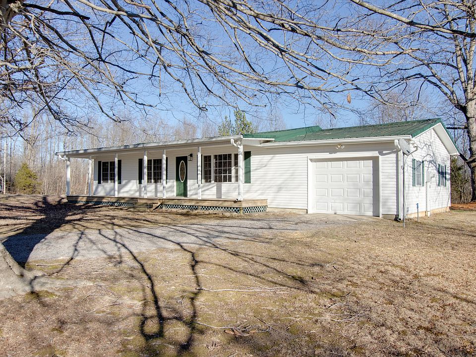 Completely Remodeled ranch style home on 6.85 Acres. All new throughout, including cabinetry, Stainless Steel Appliances, LVP flooring, carpet, and new HVAC system. 20x23 Detached Shop attached oversized one car garage and 26x14 covered and screened in patio. This house is secluded in a very private setting with a gorgeous sunset view from the rocking chair front porch!