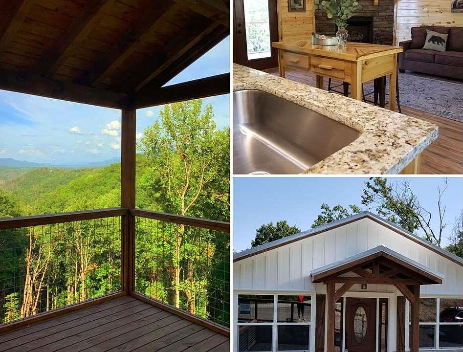 **Projected to do 45-50k on overnight rental** Gorgeous VIEWS from this brand new, just completed 8/14, 1 bedroom/1.5 bath chalet located just minutes from downtown Gatlinburg, Ober Ski Resort and the GSM National Park. This stylish chalet is being sold furnished, boasts all high end finishes, open concept, tongue and groove throughout, 2 large stone fireplaces, hardwood flooring, granite counter tops, stainless steel appliances, custom made cabinets, large stone shower, heavy timber steps, hog wire fence railing, wood and stone exterior, new sofa sleeper, love seat, bedroom suit and more! Master En Suite has a gas, stone fireplace, bath with huge stone shower, and large private balcony with views!!! ALSO INCLUDED IN PRICE(waiting on delivey): 2- 55" SMART TVS, 2 - full swivel TV mounts, coffee table, stack washer/dryer, bathroom mirrors with wood trim, and a porch swing; all new.