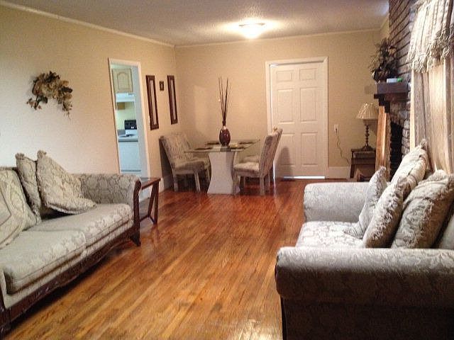 Tankless hot water heater, hardwood flooring, living room/dining room combo and sun room.