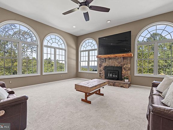 Breath taking, private, year round views of Clarke Valley that go all the way to West Virginia on this secluded 22 acres in the Blue Ridge Mountains with spectacular sunsets year round with nighttime lighting adding to the serene atmosphere of the property. ASSUMABLE LOAN opportunity! Relax in this tranquil setting in your pool, hot tub, paved patio, screened porch or fire pit area and enjoy the abundant wildlife. Be blown away upon arriving at the newly poured concrete circle with an abundance of parking options that include a pad that is ready for a detached 3 car garage and a 2 car side load garage. With a large front porch greeting you, your new home will impress all who visit. The 2 story foyer with gleaming hardwood flooring greets you upon arrival and the open floor plan boasts tons of potential for entertaining and gatherings. Large family room with stone fireplace with wood stove insert, provides spectacular views with floor to ceiling windows showing off your home. Recently remodeled kitchen was completed in 2021 and boasts Quartz counter tops, beautiful backsplash, large center island/breakfast bar area and plenty of cabinet space for storage. Walkout to your private screened in porch to enjoy dinners or morning coffee while looking out to West Virginia. Main level home office boasts a large Bay Window with scenic views and formal dining room and family room with wood stove. The Primary Suite provides cathedral ceilings and cavernous room with 2 walk-in closets and spa-like bath with dual vanities, soaking tub with wonderful views and electric heater for winter mornings. The upper level is finished with a wonderful flow of 3 additional large bedrooms and hall bath with double sink vanity. The finished basement offers a large recreation room with walkout to patio and pool area, 2 additional NTC bedrooms and TWO Full Bathrooms. Entertain guests on your patio/pool area that includes hot tub and a fire pit area, the opportunities are limitless!! Septic had 1 additional tank and 4 additional lines added in 2021 to the field, 20x20 storage area created under screened in porch along with outdoor shower. Your in-ground pool allows you to enjoy the summer months and bask in the sun. This is a little piece of heaven just waiting for you!! Easy access to the Appalachian Trail, routes 7 & 9 and stop by the many local Restaurants, Wineries or Breweries the area has to offer. New HVAC systems and 14,000 watt generator. Accepting Backup Offers