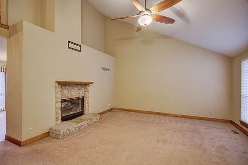 Soaring ceiling & stone fireplace welcome you home. Comfort of the see through fireplace goes to the eat-in kitchen. Kitchen has been updated including refinished cabinets, stainless appliances, granite counter, and tile back splash Super-sized fenced in backyard offers hours of fun. Large master offers vaulted ceiling, large bathroom w/double vanity, large shower & separate tub. Finished basement offers room to work out, study, or just hang out. Newer high efficiency furnace and AC. Nothing left to do but move in
