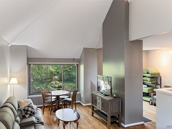 SPARKLING, TURNKEY property - most furniture items included in the asking price. VERY unique property. It is centrally located with easy access to Rochester's popular sights and tourist attractions, restaurants, bars and nightlife. The property is set back from the main road (East Ave), and is protected from the noise of the street. Furthermore, there is a lush back yard and a fountain bird bath, creating serenity. You can't find many properties like this in downtown. Open floor plan on the main level. There's a half bath and an attached one car garage on the main level. Master bedroom has vaulted ceilings with ensuite full bath and queen mattress. There is a queen bed in the Loft. Full tear off roof in 2014. NO HOA fees!
