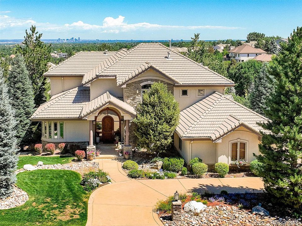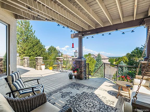 Welcome to The Highwoods neighborhood, a coveted gated community, with a recently updated pool and pickleball court, in the heart of Highlands Ranch. For the most discriminating buyer who appreciates style & quality, this home was custom built with stunning views that leave a lasting impression. This home is situated on a ½ acre lot that is beautifully landscaped where you can enjoy several well-designed outdoor living spaces. Inside you will find exceptional custom features including, Hickory hardwood flooring, Colorado mountain inspired knotty pine doors & trim, handcrafted built in cabinetry, casement windows with custom window coverings, a sophisticated curved staircase with wrought iron spindles, 5 unique gas fireplaces, a full finished, walkout basement and an oversized 4 car garage including a workshop area. The updated kitchen is truly a chef’s dream and goes beyond the basics to include Thermador double ovens, 6 burner gas cooktop, a built-in Sub-Zero refrigerator, an expansive center island, a stainless prep sink in addition to the double basin sink, beautiful cabinets & luxury granite countertops. Upstairs you will find 3 bedroom ensuites including the dreamy primary suite overlooking the views of downtown and the front range from the private veranda. You will fall in love with the remodeled primary bath with a freestanding soaking tub, two separate sink areas, heated tile floors and a generous custom walk-in closet, a must see! The large upstairs laundry room is an unexpected bonus since there is also a full mudroom/laundry on the main floor. There are endless possibilities for the lower level where you will find the 4th bedroom, a private ¾ bath, a charming wet bar w/hammered copper backsplash & bar top, a large wine room w/a spiral staircase that takes you up to a hidden door into the main floor study. All of the special elements create an inviting home unique from the rest where you can tailor the neutral décor to reflect you own personal style.